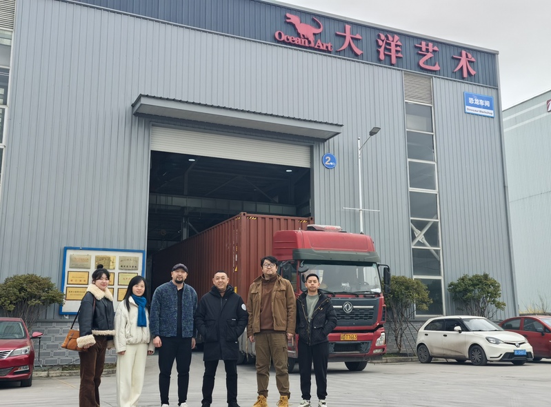 1月29日,美术学院院长黄磊、副书记李珊、副院长牛杰、美术学系主任江毅、彩灯艺术系主任李富彬、辅导员王可心一行前往自贡市大洋艺术有限责任公司访企拓岗。此次走访旨在精准对接企业人才需求,探索美术人才培养新模式,拓宽毕业生就业渠道,实现校企资源优势互补。在大洋艺术有限责任公司董事长郭刚的陪同下,黄磊一行参观了企业的生产基地与产品展厅,观摩了企业最新研发的智能互动彩灯、高仿真恐龙模型及海外定制主题展品。董事长郭刚详细介绍了仿真恐龙产品从创意设计、钢架搭建、肌理塑造到智能控制的全流程,让黄磊一行直观地感受到文旅产业“传统+科技”的发展态势。座谈会上,董事长郭刚首先介绍了企业发展规划与人才需求导向。他表示,随着企业业务向国际化、智能化拓展,亟需一批兼具扎实美术功底、创新设计思维与跨学科应用能力的复合型人才,尤其在造型设计、文化IP 转化、海外市场适配等领域存在迫切需求。他希望通过深化合作,建立稳定的人才输送通道。黄磊院长详细介绍了学院在彩灯艺术领域形成的突出优势,为自贡彩灯产业培养的优秀毕业生代表,并表示将以此次走访为契机,推动双方在人才培养、实习就业、项目研发等方面实现资源共享、优势互补。此项