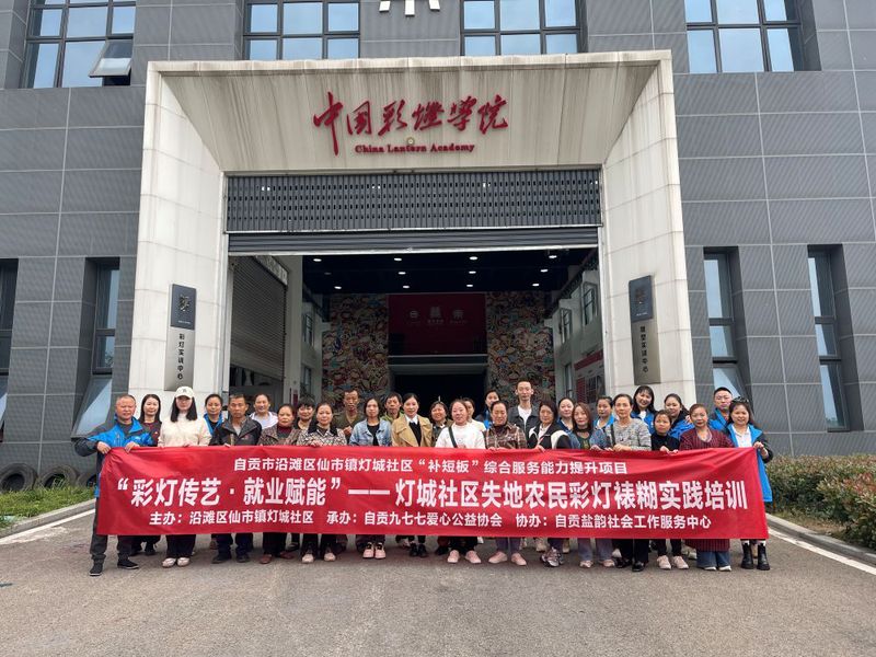 培训活动由中共四川省委社会工作部、中共自贡市沿滩区委社会工作部指导,沿滩区仙市镇灯城社区主办,自贡九七七爱心公益协会承办,自贡市盐韵社会工作服务中心协办,旨在培提升失地农民就业技能,培养和选拔一批技术熟练的彩灯裱糊工匠。