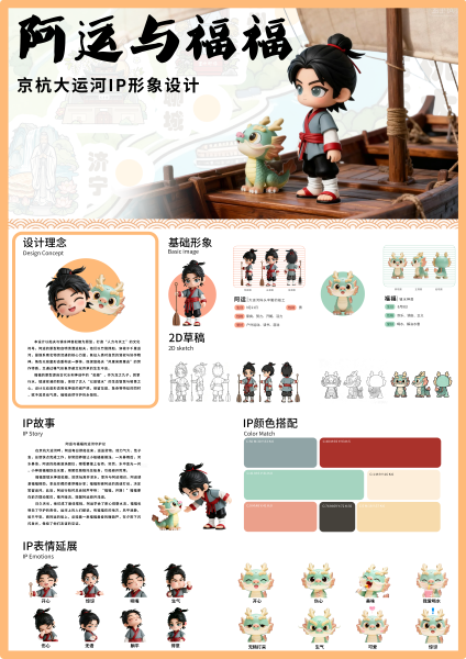 3 | 《阿运与福福京杭大运河IP形象设计》 | 袁婷、谌垚金、甘煜函 | 三等奖 | 林媛 |