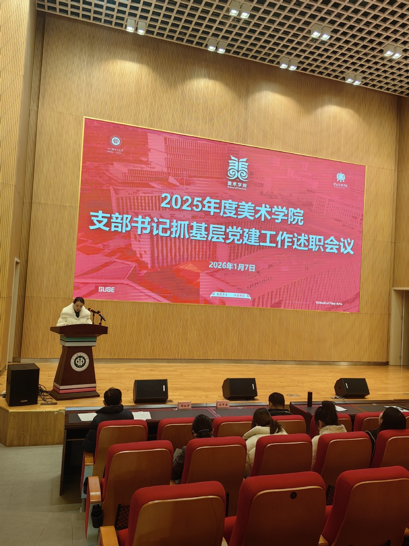 2026年1月7日上午,美术学院党委在李白河校区尚艺馆学术报告厅组织召开2025年度党支部书记抓党建工作述职评议会。校党委巡察办公室主任刘丰荣、校党委组织部党校办公室主任周栖宇,学院党委委员、纪委委员、各党支部书记参会。