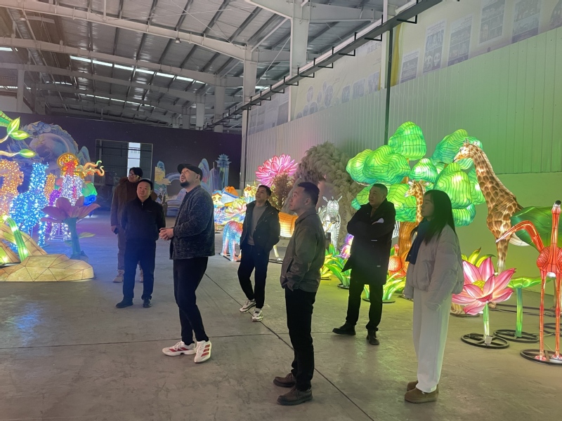 公司董事长、美术学院2010级校友赵云陪同参观交流。在公司的彩灯设计展厅与生产基地,赵云详细介绍了公司近年来在创意设计、生产工艺等方面的创新成果。从传统的大型灯组到融合AI互动、机械传动的现代智能彩灯,使一行人从中感受到校友企业传承和创新自贡彩灯的突出贡献。